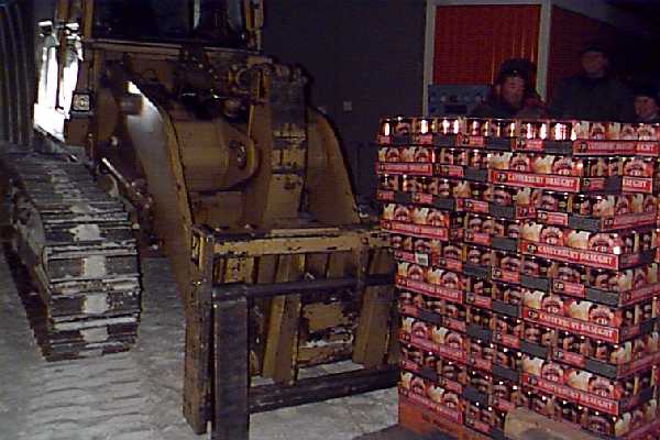 on. The winter season's supply of beer has arrived, several pallet