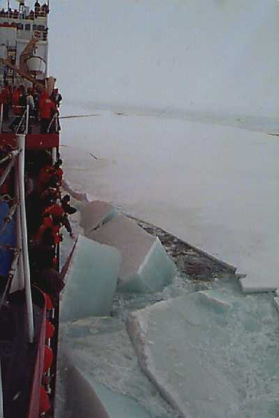 an onrushing icebreaker: and there were orcas ('killer whales') in the