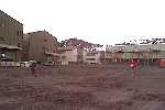 the beep-beep backup warning of heavy trucks, but not many people about.