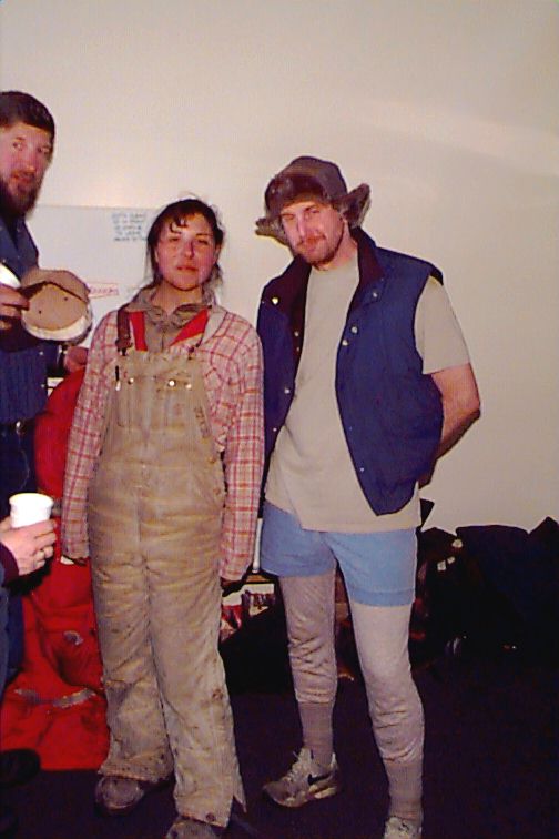 I am outside, waiting with the video camera to get some footage of a plane departing in a cloud of exhaust. I am slowly freezing, as I am standing still. Now, the DV's are at the Ceremonial Pole. It's right next to the plane: but they don't walk over and climb aboard: they get back into the snowcat and Don drives them down into the Dome. I am really freezing, so I figure that the walk will warm me up. I end up in the galley, looking for someone who can give me an idea of when the plane will be taking off.