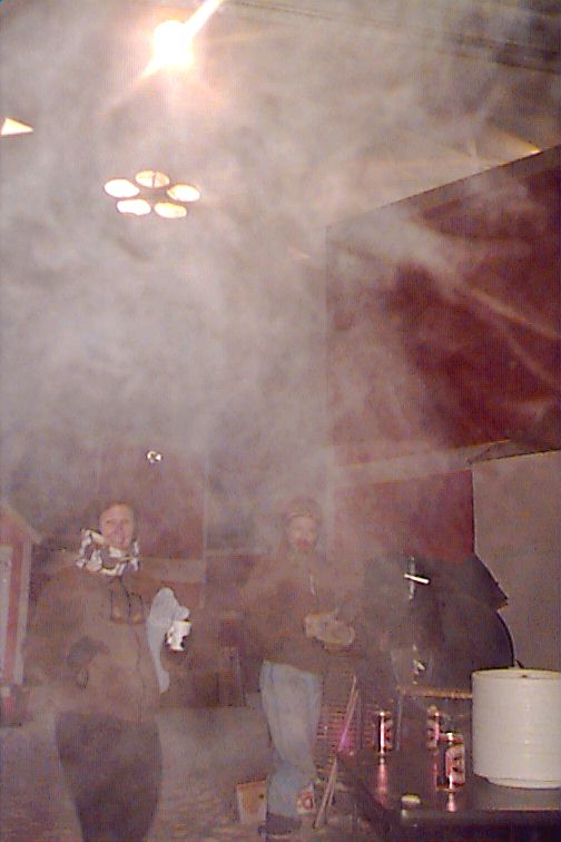 departed. Steaks are sizzling, a huge cloud of greasy smoke is going up