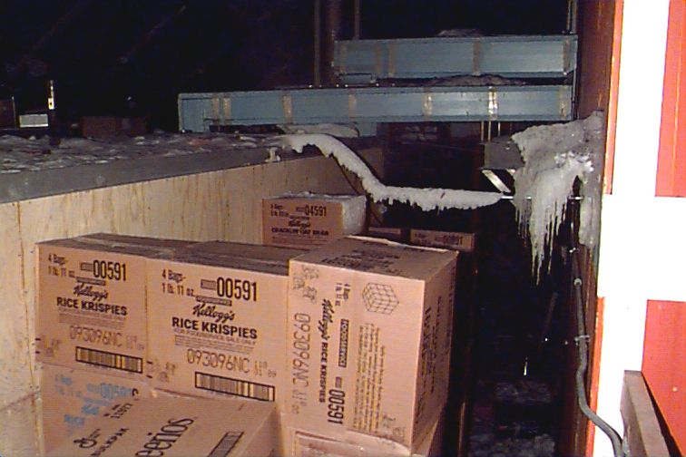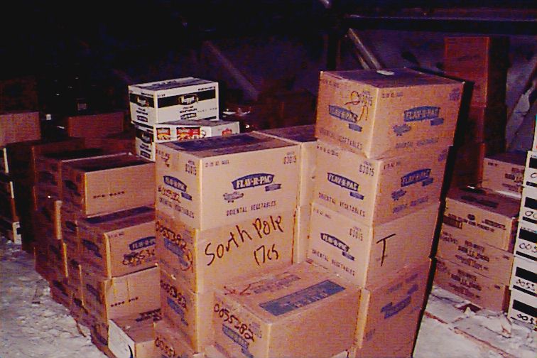 All around the inside perimeter are boxes and boxes of food, perfectly