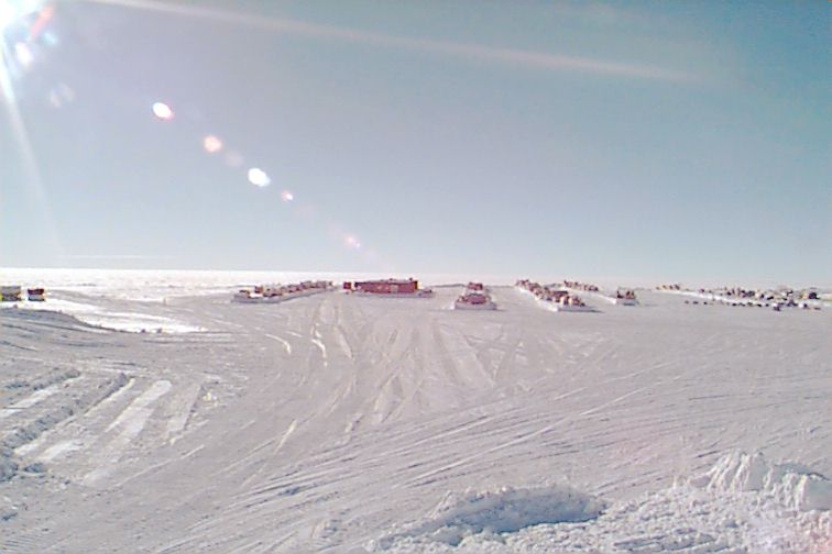 We dance. Everybody dances. A room full of gyrating people, loud music .. so far, a party anywhere. But we're at the South Pole. Behind the tarps pushed up over the windows, the sun burns bright, too bright to look at. Outside, it's 35 below zero, and this building never had a bathroom. The beer runs through you fast. The dancing people, myself included, are wearing bunny boots and insulated coveralls. I, for example, am wearing: underwear shorts; underwear longs; thick boot socks; bunny boots; underwear top t-shirt; underwear top longs; turtleneck shirt; denim shirt. My parka is hanging on a nail, together with my fleece jacket, hat, goggs and gloves. The floor is littered with beer cans. We dance, in 4 layers of clothing and insulated boots, at a physiological altitude of 10,350 feet. I gasp for breath every couple of dances, young guys in brown coveralls with stringy hair and Jesus beards give me another beer.