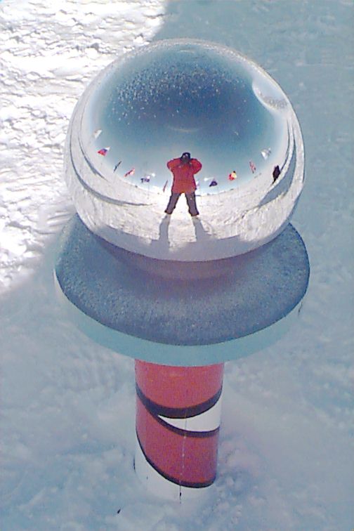 The Geographic Pole is a pole in the snow with a USGS Survey Marker on