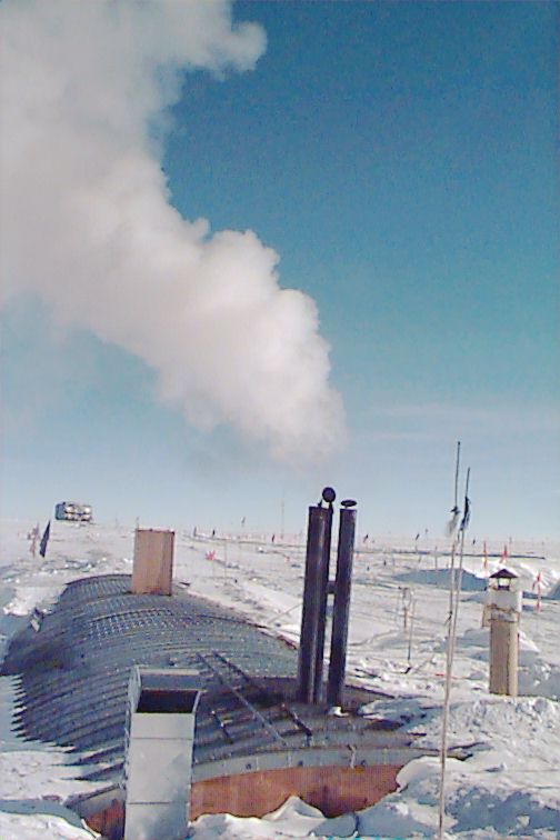 a 300-foot hose deep down into the ice, and suck up the melted water. This
