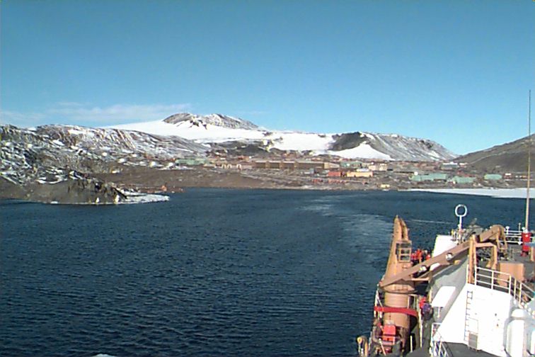From my window I am looking west: right underneath is the helicopter pad area, beyond that is the McMurdo Sound with patches of open water and then the Trans-Antarctic Mountains in the distance.