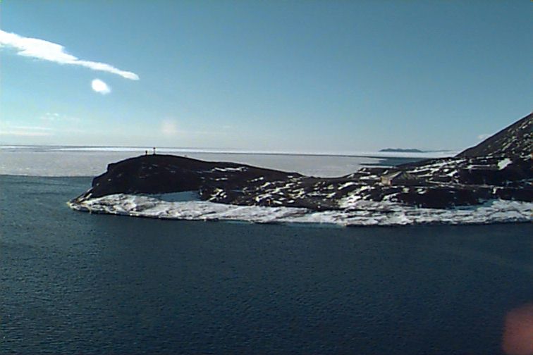which is on the permanent ice of the Ross Ice Shelf, over from the East