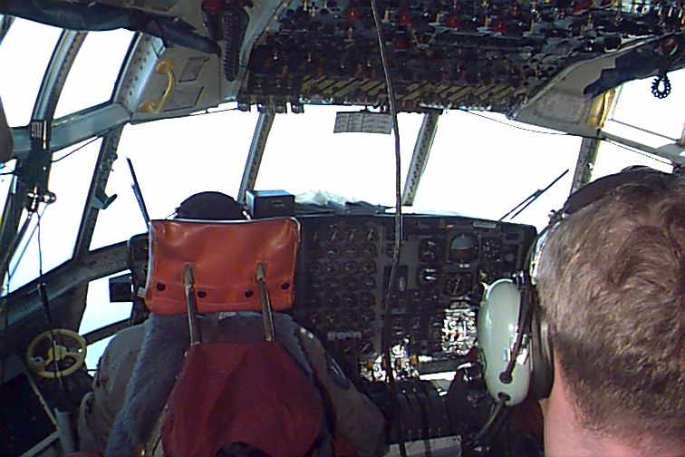 a nice warm plane, in his tropical-white NOAA Corps uniform. He almost