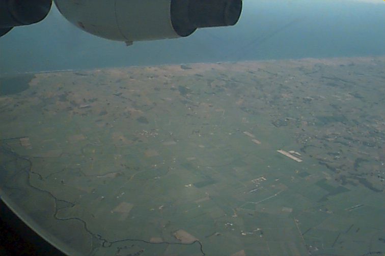awoke at about sunrise: we were flying through a luminous pink mist, somewhere
