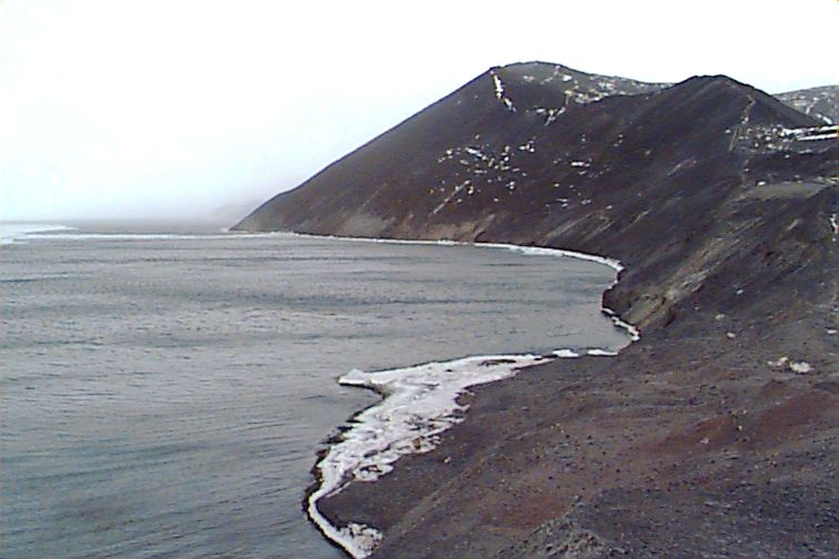 volcanic rock, overlooking the coldest ocean water I have ever seen. The