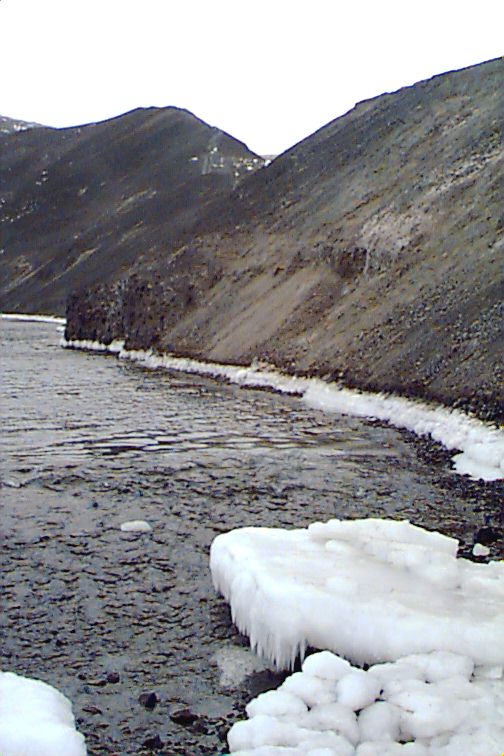 I turn, and examine some of the smooth pebbles, covered in ice yet washed
