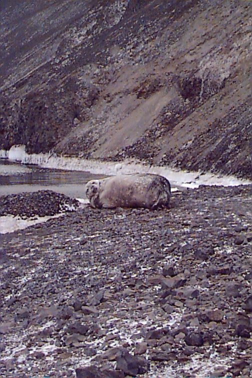 by water. I turn back, and there is now a seal looking at me, hauled up
